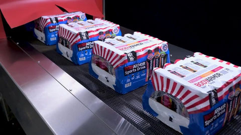 The Velocity Shrink Wrap and Tray Bundler runs clear or printed shrink film (random print or print registered) utilizing a flight bar conveyor system.